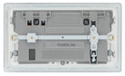 The FPC22UAC22W is a 13A double USB socket with a 22W fast charge A+C port from the BG Screwless range, finished in polished chrome with white inserts. The 22 Watt variable voltage fast charging supports PD & QC charging protocols for Android and iOS devices, and auto-detects the USB device and adjusts the charging pattern to suit. With no visible screws on the decorative front plate, the collection also has a low profile, projecting 3mm from the wall. This range also comes with a full grid system to match.