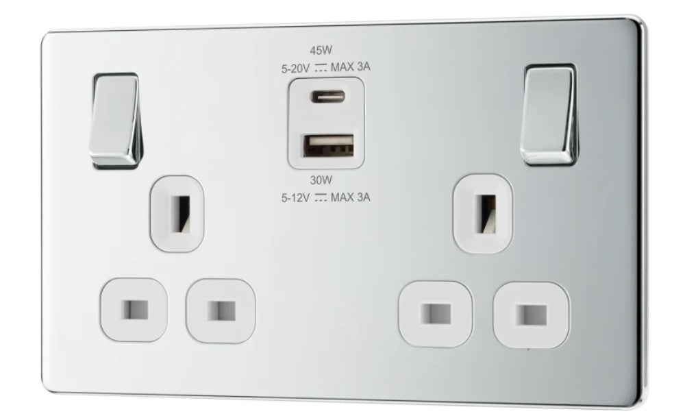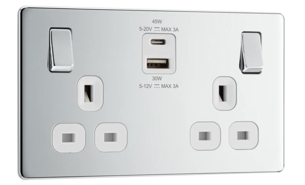 BG Screwless Polished Chrome 13A Double USB 45W Socket A&C Ports FPC22UAC45W