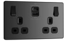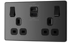 Evolve Polycarbonate Black Chrome 13A Double USB Socket with 45W A+C Ports PCDBC22UAC45B