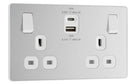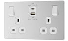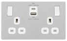 Evolve Polycarbonate Brushed Steel Double USB Socket 45W with A+C Ports PCDBS22UAC45W