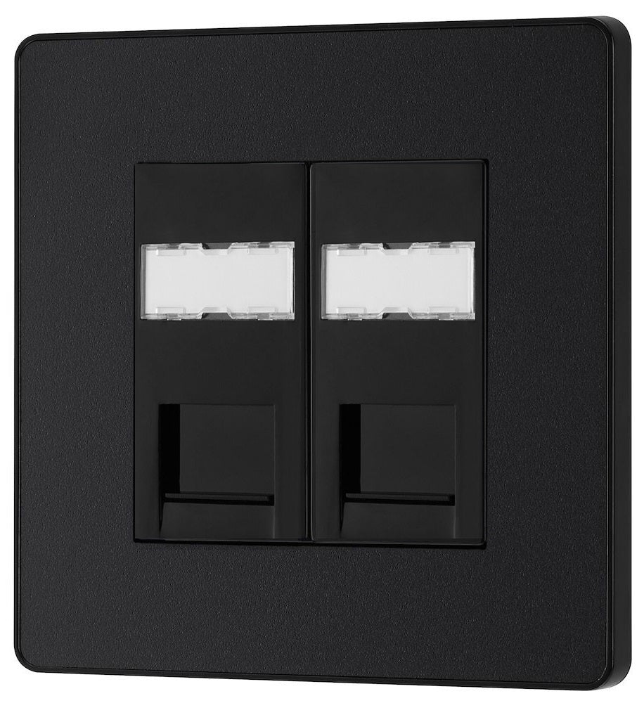 The PCDMBRJ4526B is a double cat6 socket from the BG Evolve range, finished in matt black and built using the BG Euro Modular system. The newest decorative collection from BG, the Evolve range is constructed from a lightweight, polycarbonate material, with a slim profile and a contrast edging.