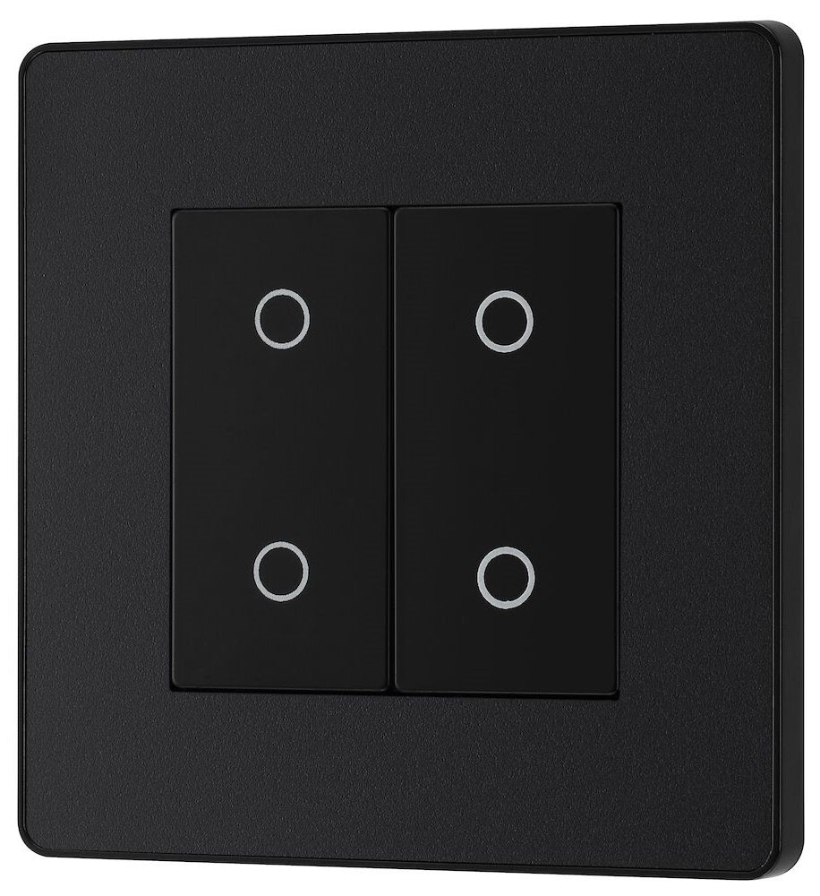 Evolve Polycarbonate Matt Black Double Secondary Touch Dimmer Switch PCDMBTDS2B