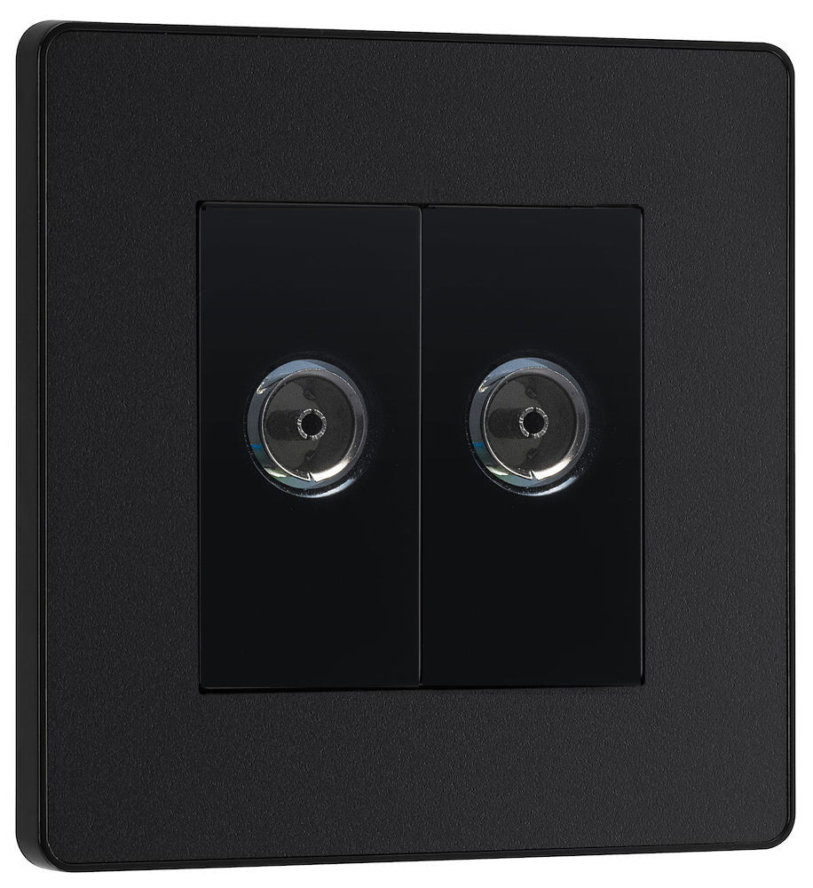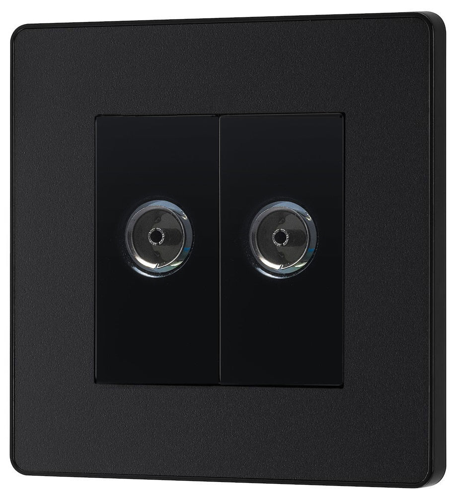 Evolve Polycarbonate Matt Black Double TV Socket PCDMB602B