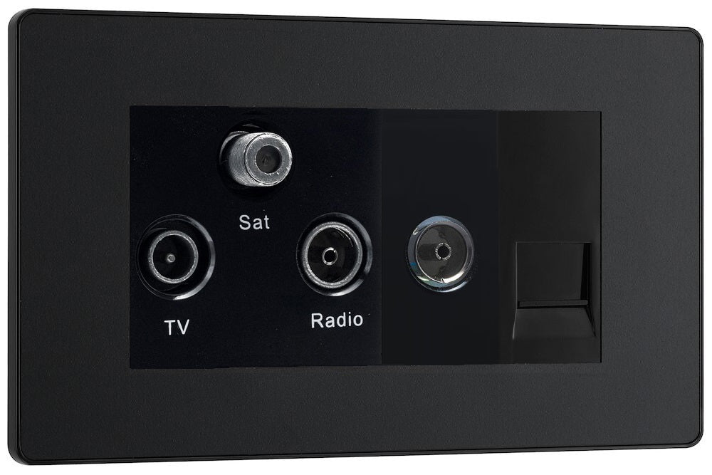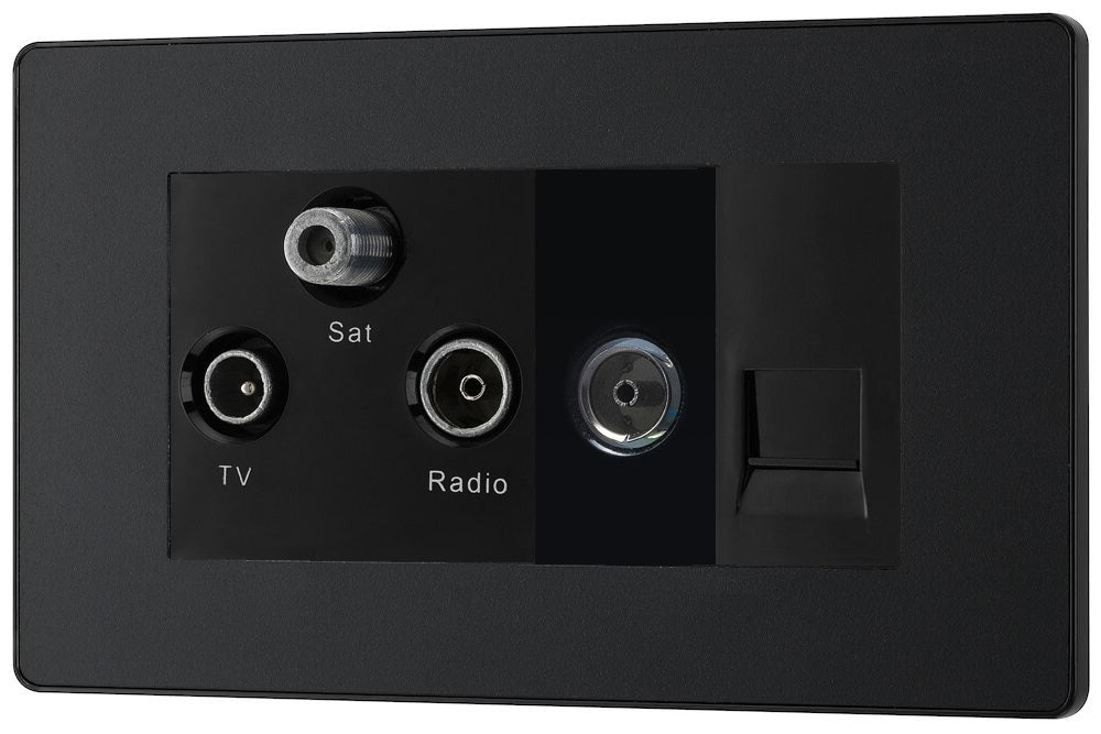 Evolve Polycarbonate Matt Black Triplex Combination TV Socket PCDMBTRI2B