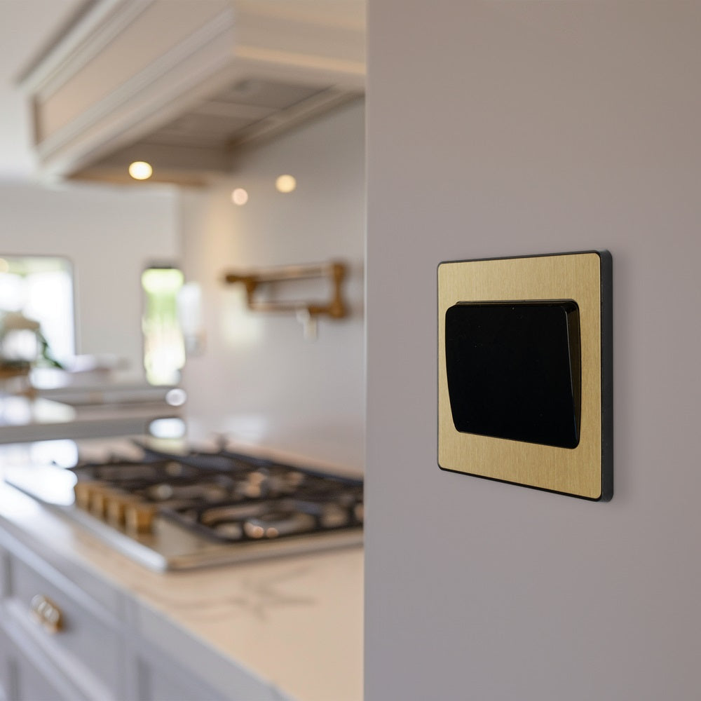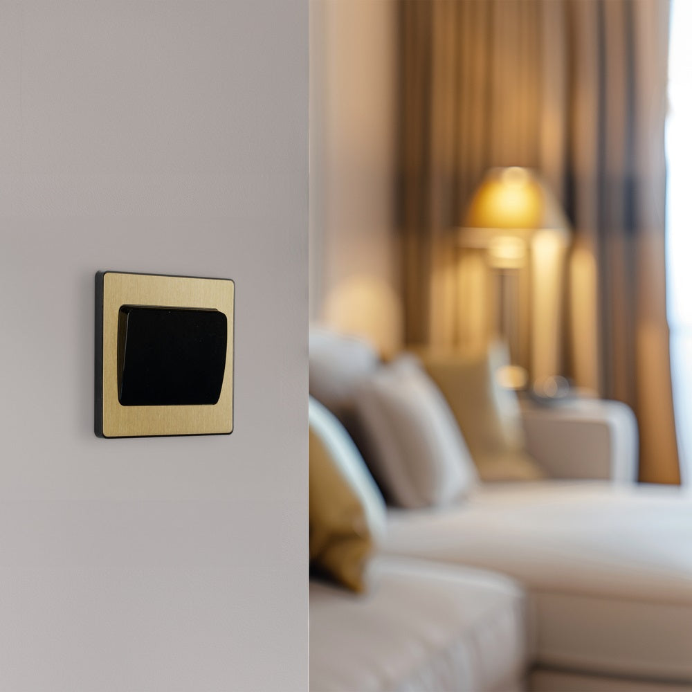 Evolve Polycarbonate Satin Brass 1G Wide Rocker Light Switch PCDSB12WB