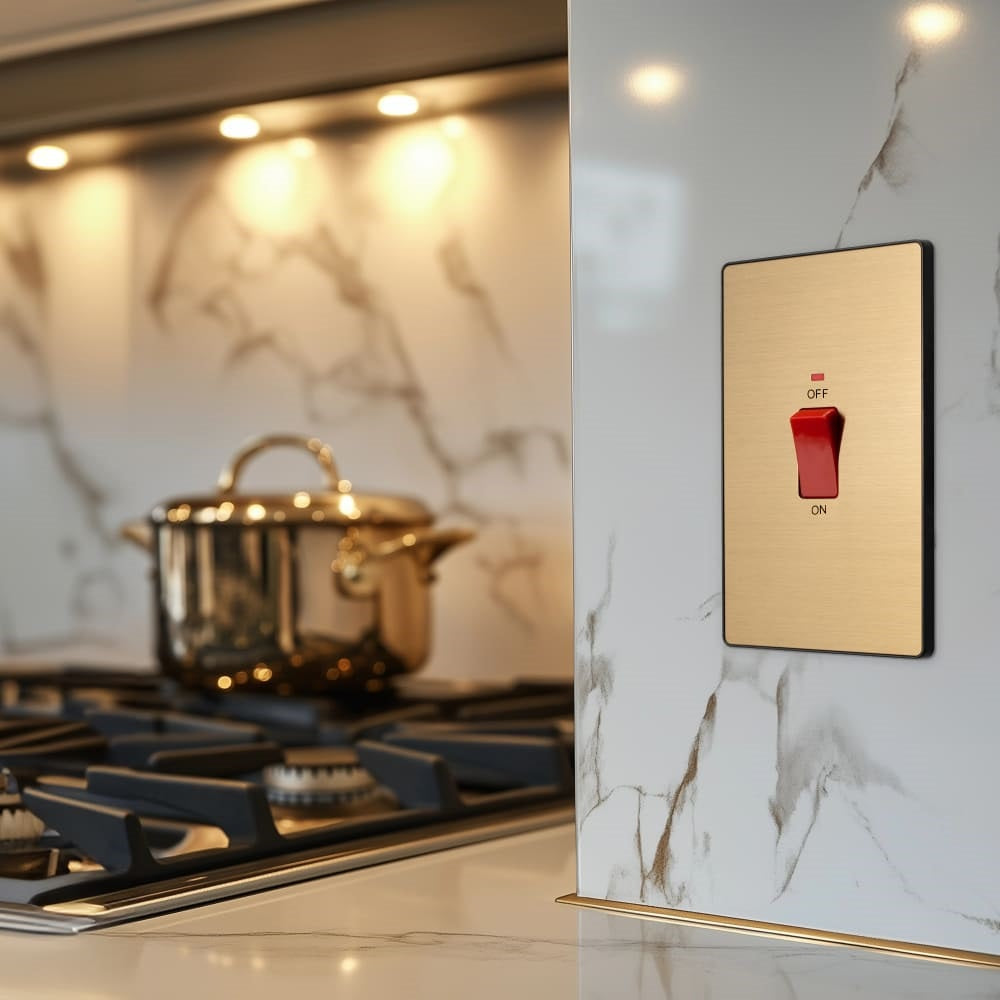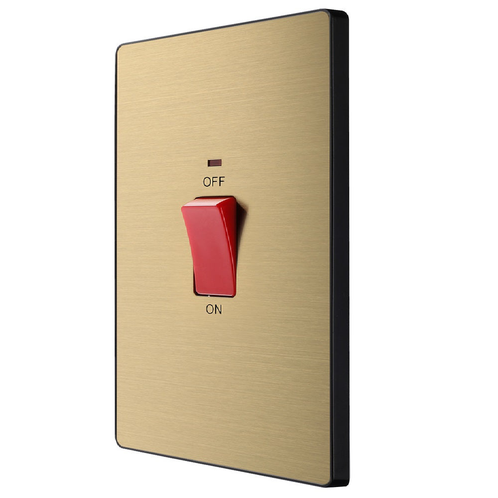 Evolve Polycarbonate Satin Brass 45A Cooker Switch with Neon PCDSB72B