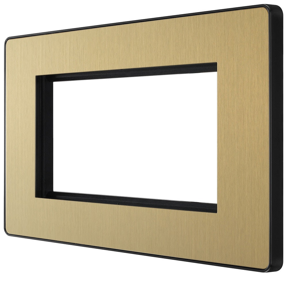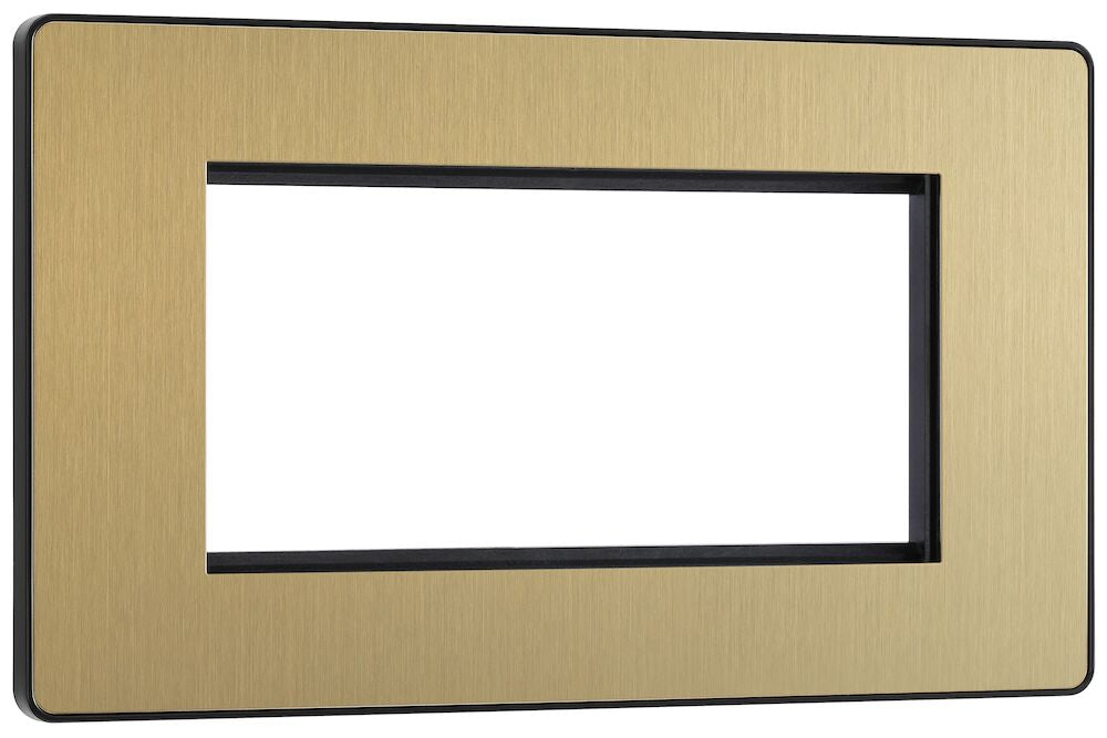 The PCDSBEMR4B is a 4G euro plate from the BG Evolve range, finished in satin brass. The Euro range has been created to give you the flexibility to create bespoke combinations of switches. The newest decorative collection from BG, the Evolve range is constructed from a lightweight, polycarbonate material, with a slim profile and a contrast edging.