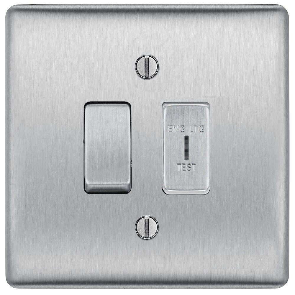 The NBS42EL is an 2W & Emergency key switch from the BG Nexus Metal range, finished in brushed steel and built using BG Nexus Grid system. This range of switches and sockets has been designed with a modern, slim profile and has a lightly lacquered surface to reduce fingerprint marks. The BG Nexus Metal switches and sockets come with colour coded screws and has a full grid system to match.