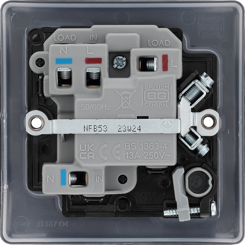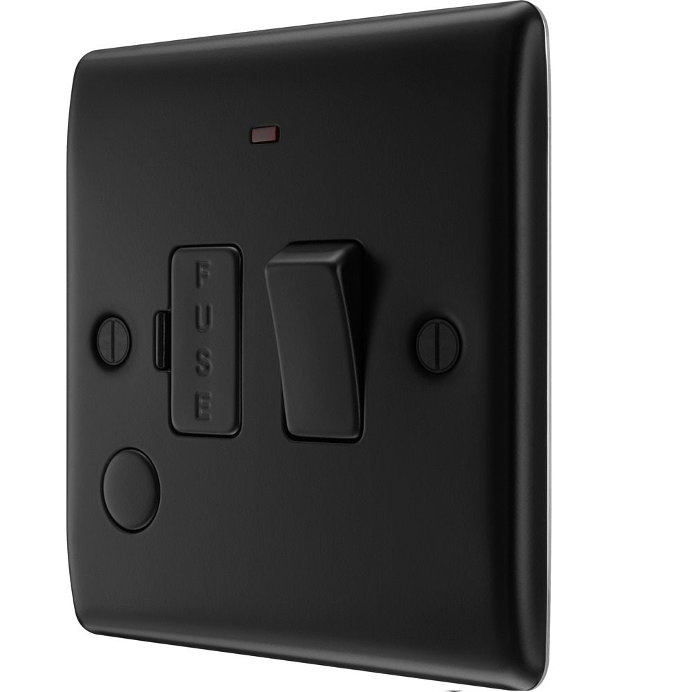 The NFB53 is a 13A switched spur with neon and flex from the Nexus Metal range from BG Electrical, finished in Matt Black. The nexus range of switches and sockets has been designed with a modern, slim profile and has a lightly lacquered surface to reduce fingerprint marks.