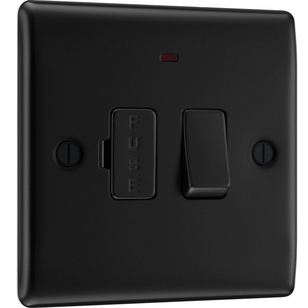 The NFB52 is a 13A switched spur with neon from the Nexus Metal range from BG Electrical, finished in Matt Black. The nexus range of switches and sockets has been designed with a modern, slim profile and has a lightly lacquered surface to reduce fingerprint marks.