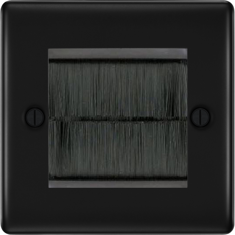 The NFBEMS2BR is a 2G cable brush outlet from the Nexus Metal range from BG Electrical, finished in Matt Black with black inserts and built using BG Euro Modular system. The nexus range of switches and sockets has been designed with a modern, slim profile and has a lightly lacquered surface to reduce fingerprint marks.