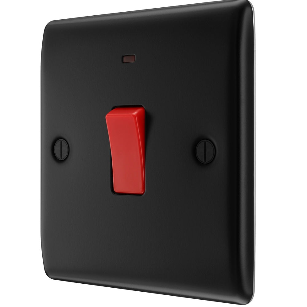 The NFB74 is a 45A cooker switch from the Nexus Metal range from BG Electrical, finished in Matt Black. The nexus range of switches and sockets has been designed with a modern, slim profile and has a lightly lacquered surface to reduce fingerprint marks.