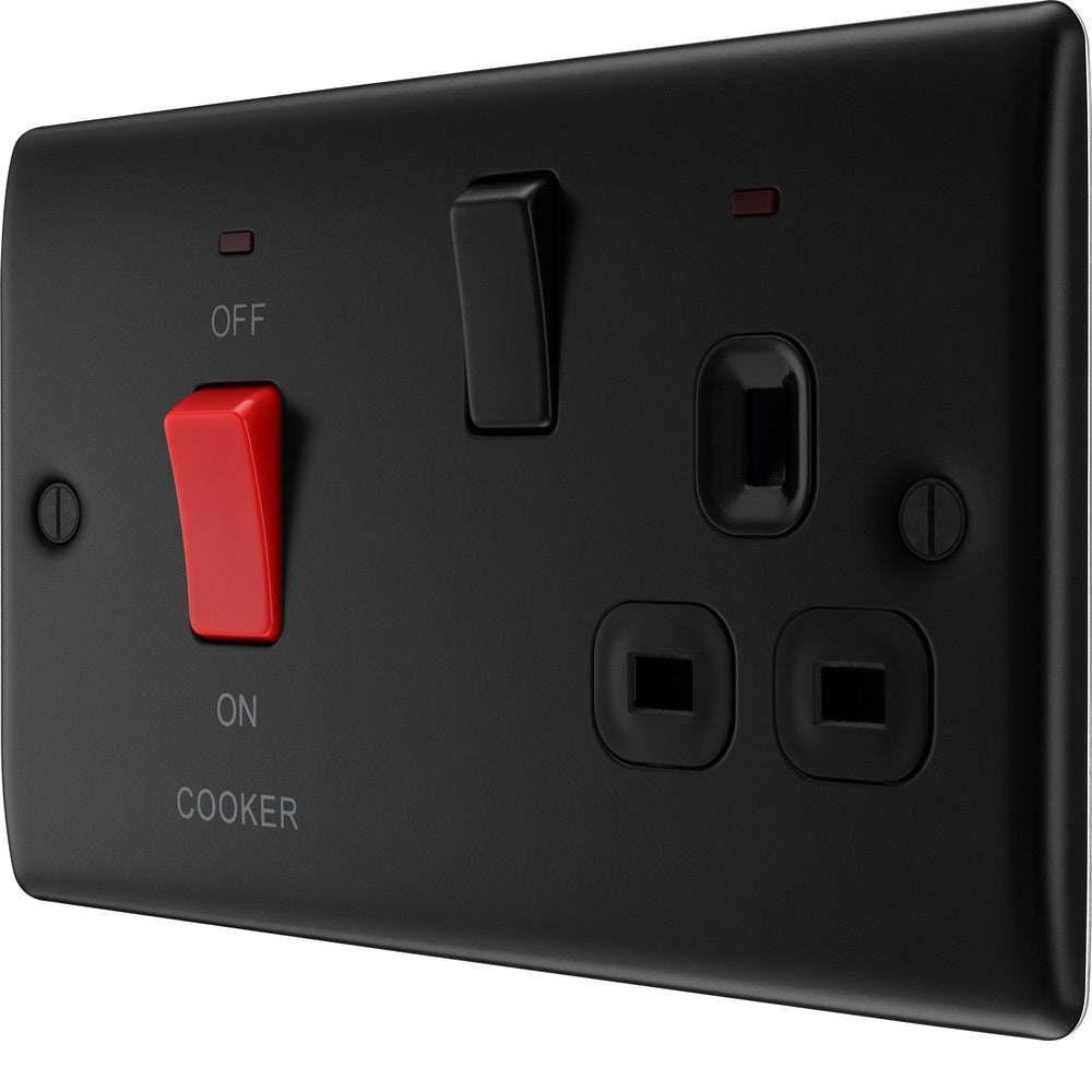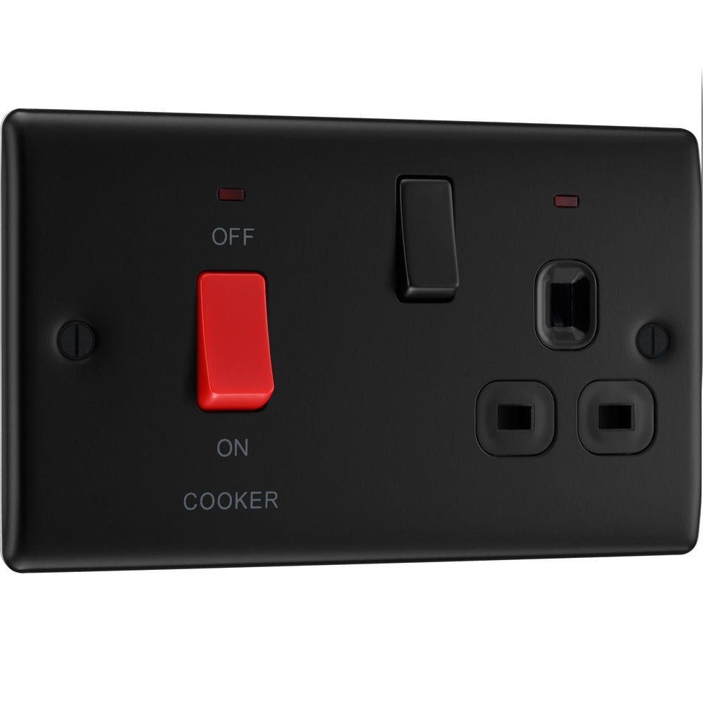 Nexus Metal Matt Black 45A Cooker Switch with 13A Socket NFB70B
