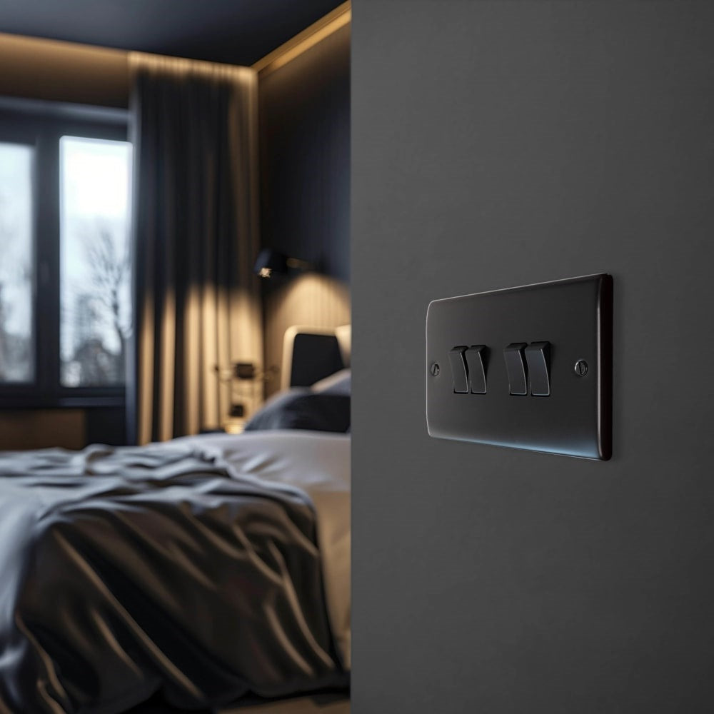 The NFB44 is a 4G 2W light switch from the Nexus Metal range from BG Electrical, finished in Matt Black. The nexus range of switches and sockets has been designed with a modern, slim profile and has a lightly lacquered surface to reduce fingerprint marks.