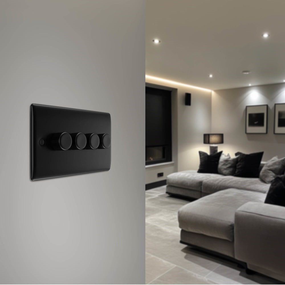 Nexus Metal Matt Black 4G Dimmer Switch NFB84