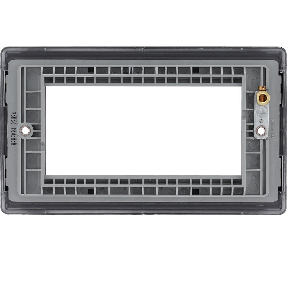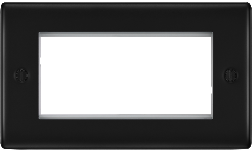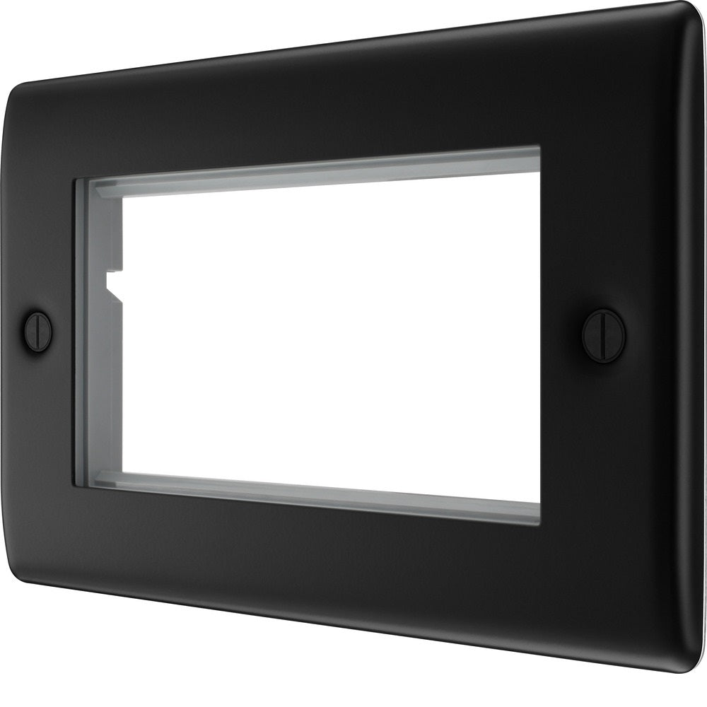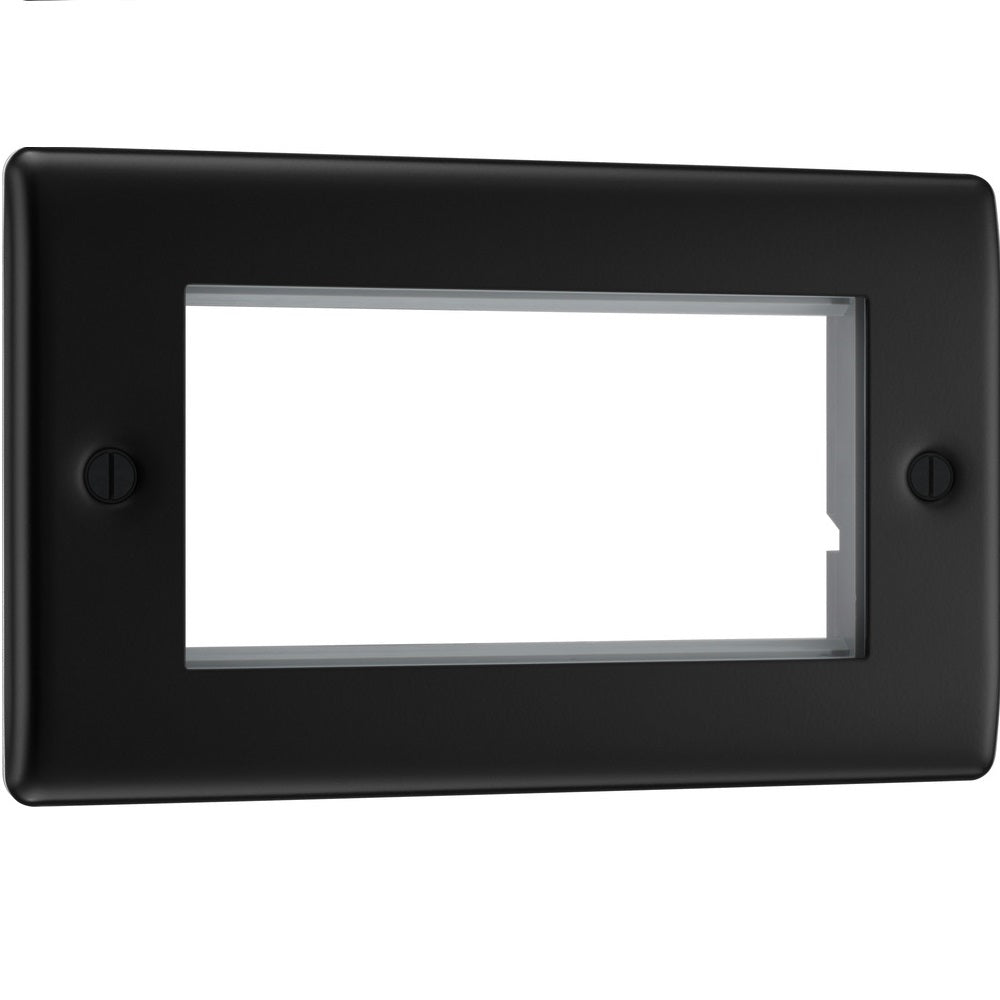 The NFBEMR4 is a 4G euro plate from the Nexus Metal range from BG Electrical, finished in Matt Black. The nexus range of switches and sockets has been designed with a modern, slim profile and has a lightly lacquered surface to reduce fingerprint marks.