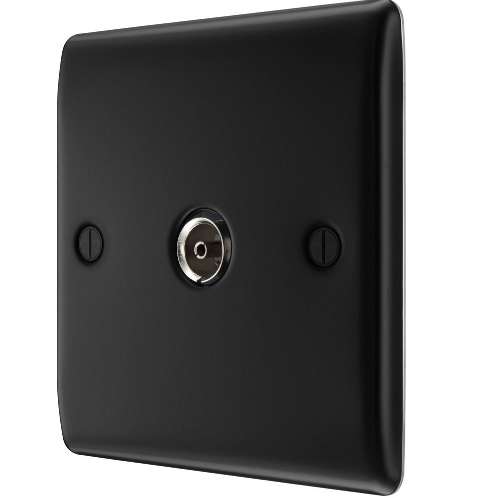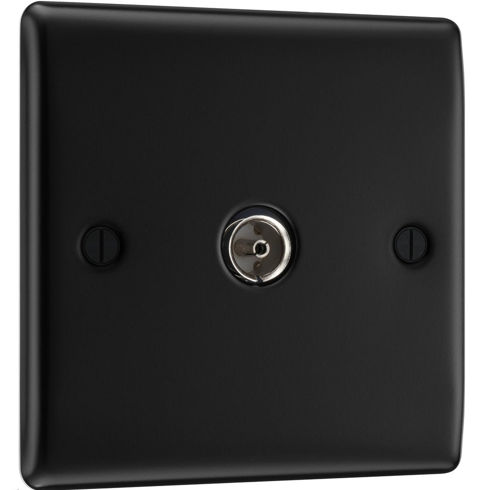 The NFB60 is a co-axial socket from the Nexus Metal range from BG Electrical, finished in Matt Black. The nexus range of switches and sockets has been designed with a modern, slim profile and has a lightly lacquered surface to reduce fingerprint marks.