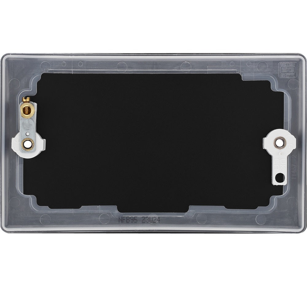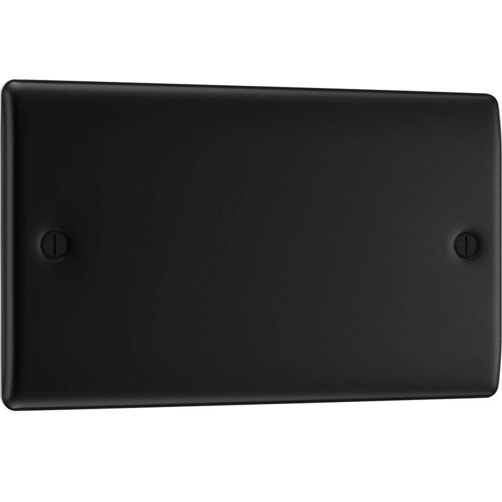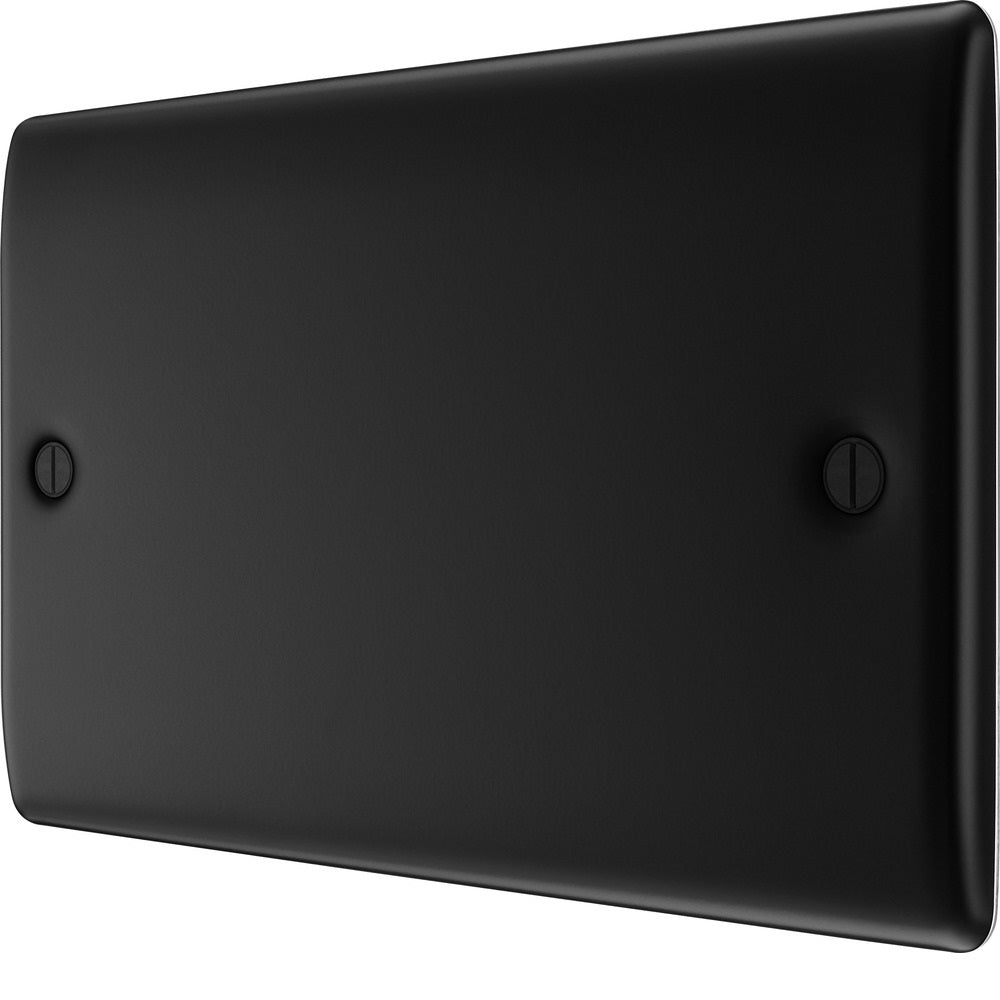 The NFB95 is a double blank plate from the Nexus Metal range from BG Electrical, finished in Matt Black. The nexus range of switches and sockets has been designed with a modern, slim profile and has a lightly lacquered surface to reduce fingerprint marks.
