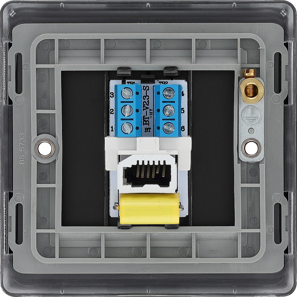 The NFBBTM1 is a master telephone socket from the Nexus Metal range from BG Electrical, finished in Matt Black. The nexus range of switches and sockets has been designed with a modern, slim profile and has a lightly lacquered surface to reduce fingerprint marks.