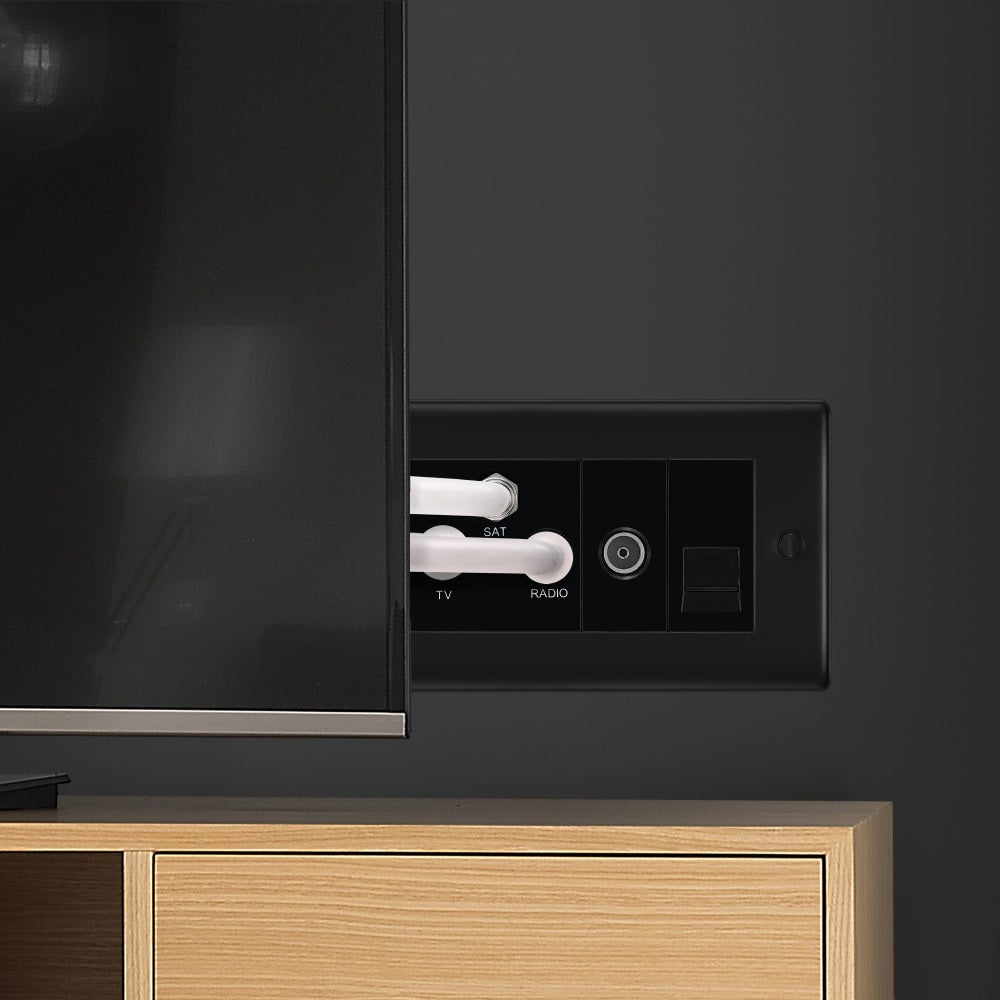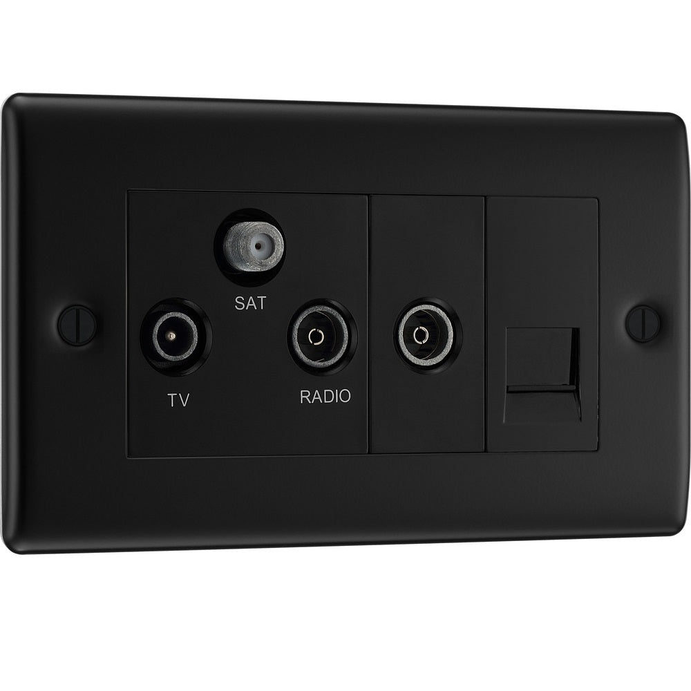 Nexus Metal Matt Black Triplex Combination TV Socket NFB68B