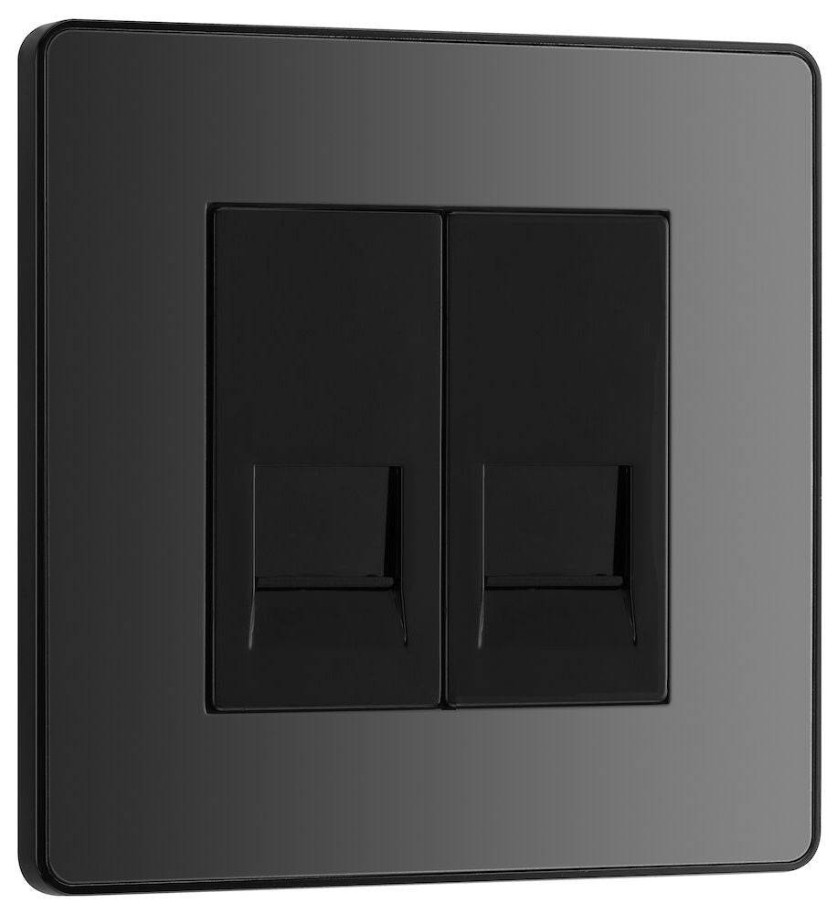 The PCDBCBTS2B is a double slave telephone socket from the BG Evolve range, finished in black chrome and built using the BG Euro Modular system. The newest decorative collection from BG, the Evolve range is constructed from a lightweight, polycarbonate material, with a slim profile and a contrast edging.