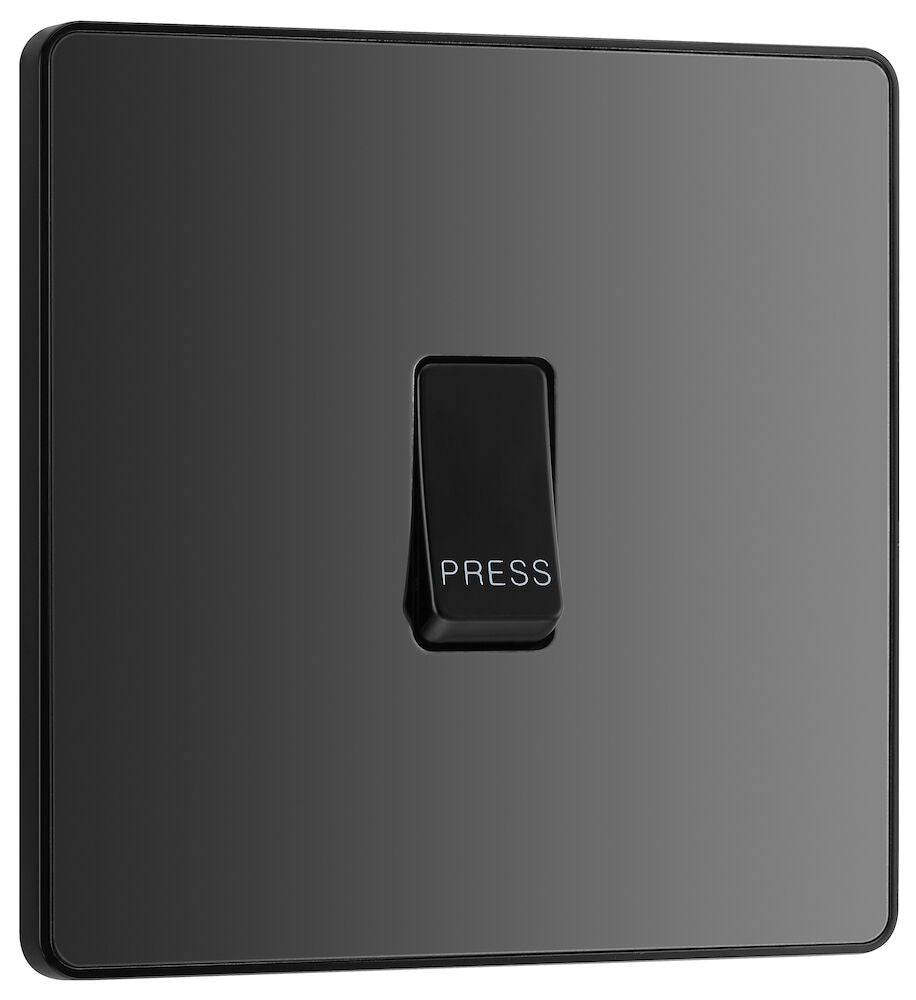 The PCDBC14B is a 10A retractive switch marked press from the BG Evolve range, finished in black chrome. The newest decorative collection from BG, the Evolve range is constructed from a lightweight, polycarbonate material, with a slim profile and a contrast edging.