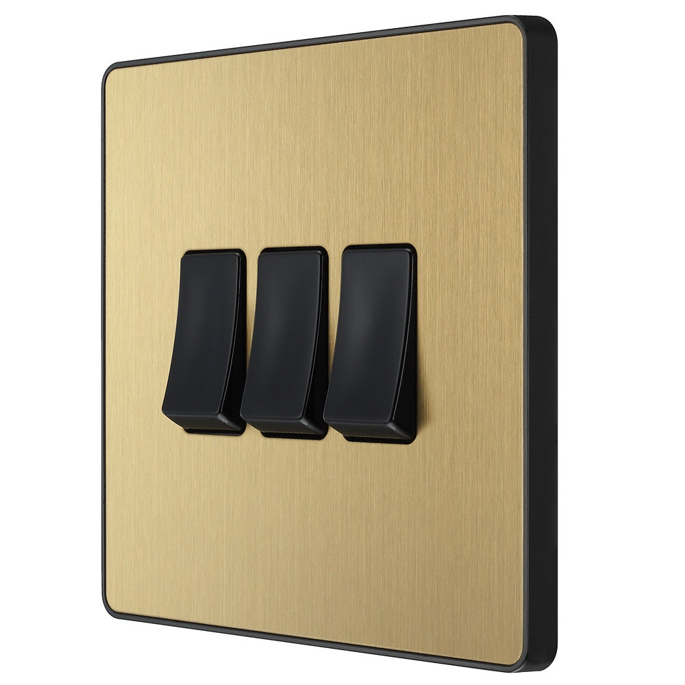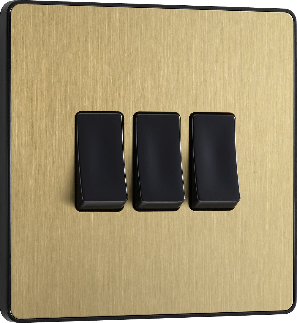 The PCDSB43B is a 3G 2W light switch from the BG Evolve range, finished in satin brass. The newest decorative collection from BG, the Evolve range is constructed from a lightweight, polycarbonate material, with a slim profile and a contrast edging.