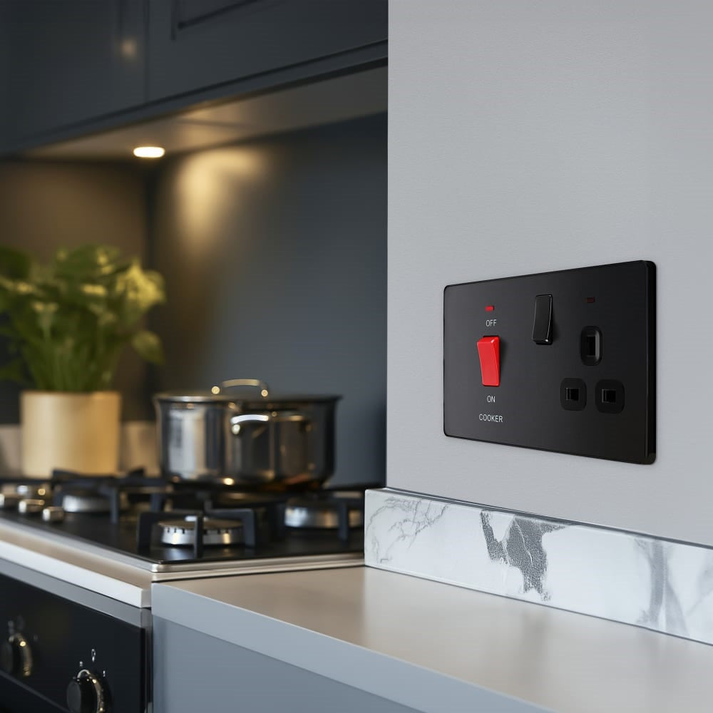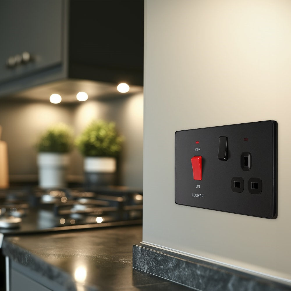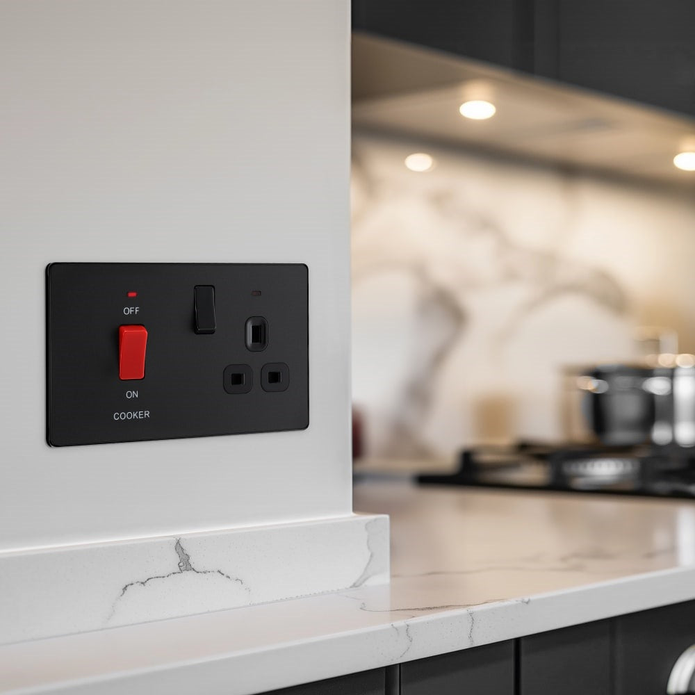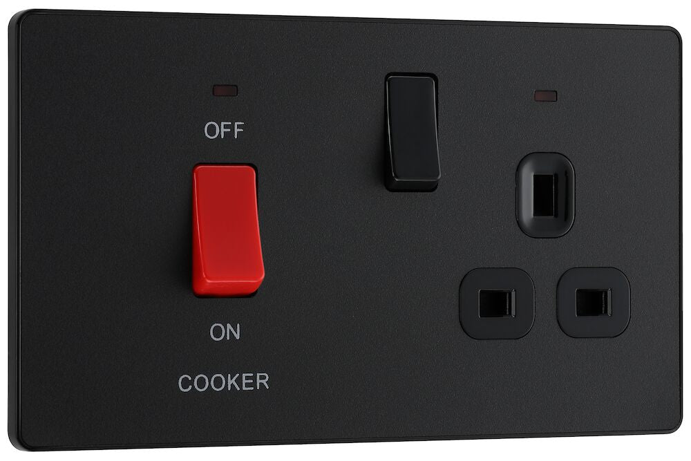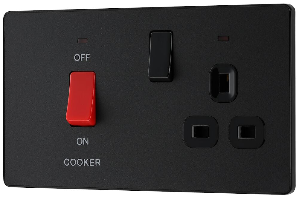Evolve Polycarbonate Matt Black Cooker Switch with 13A Socket PCDMB70B