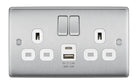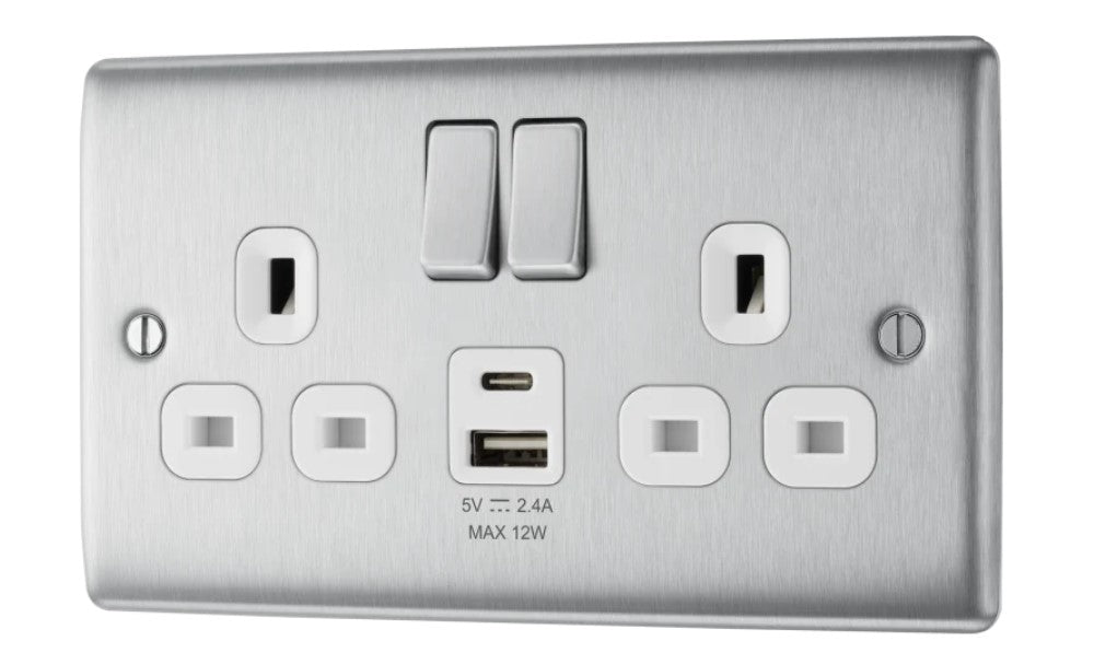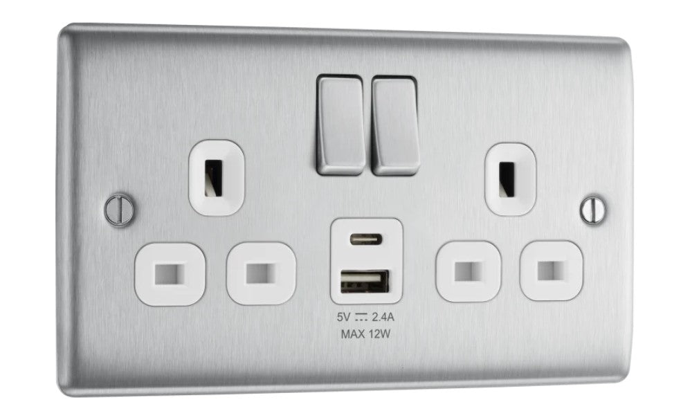 Nexus Metal Brushed Steel Double 12W A+C USB Socket NBS22UAC12W