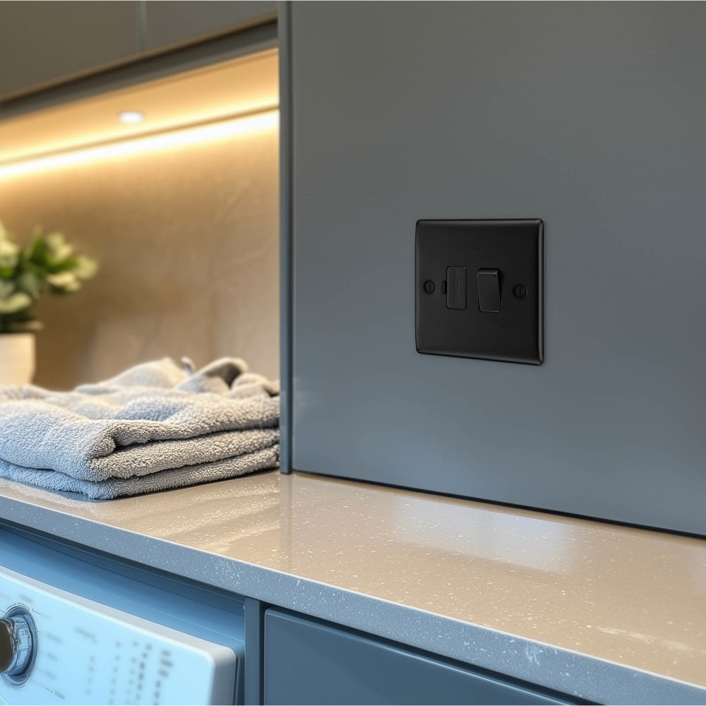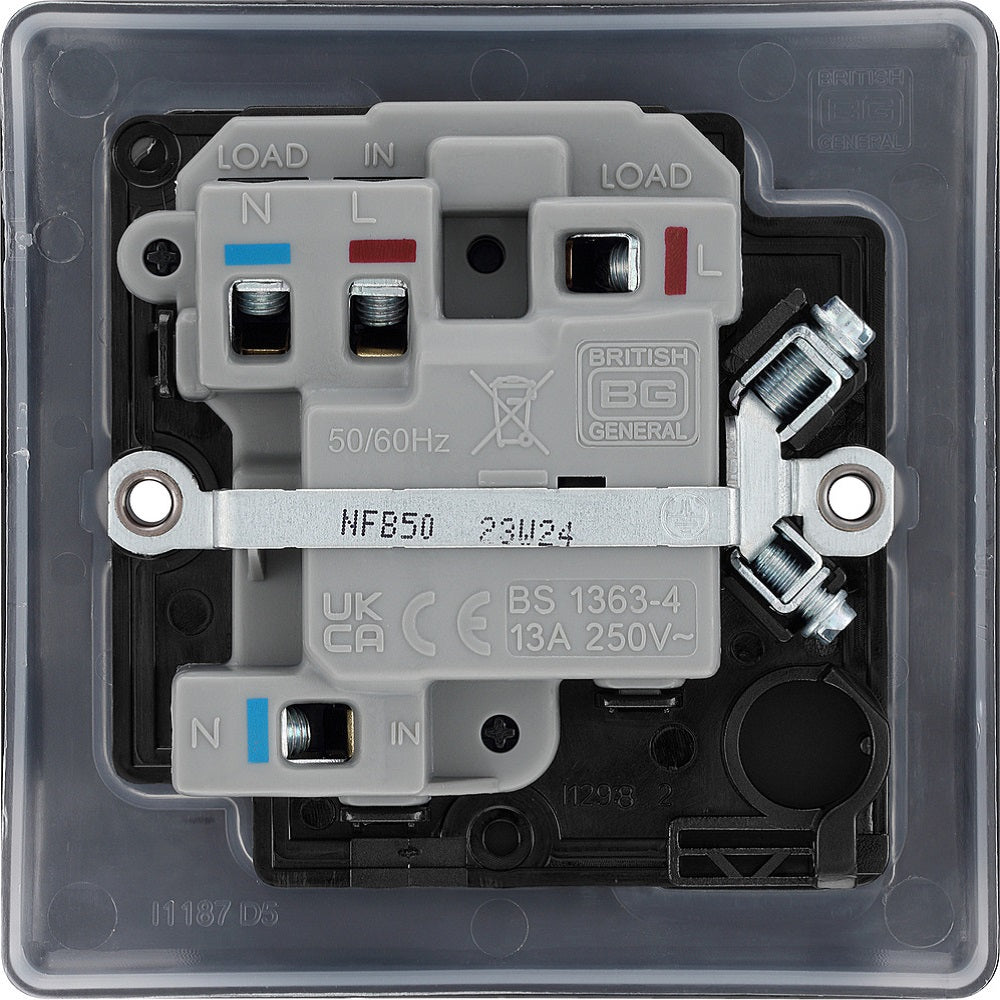 The NFB50 is a 13A switched spur from the Nexus Metal range from BG Electrical, finished in Matt Black. The nexus range of switches and sockets has been designed with a modern, slim profile and has a lightly lacquered surface to reduce fingerprint marks.